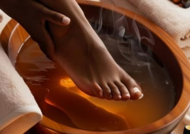Indulge in our Triple Treat Foot Therapy: Foot Detox, Foot Spa, and Foot Massage. Rejuvenate tired, aching, and swollen feet. A total pampering session for your feet's delight!
